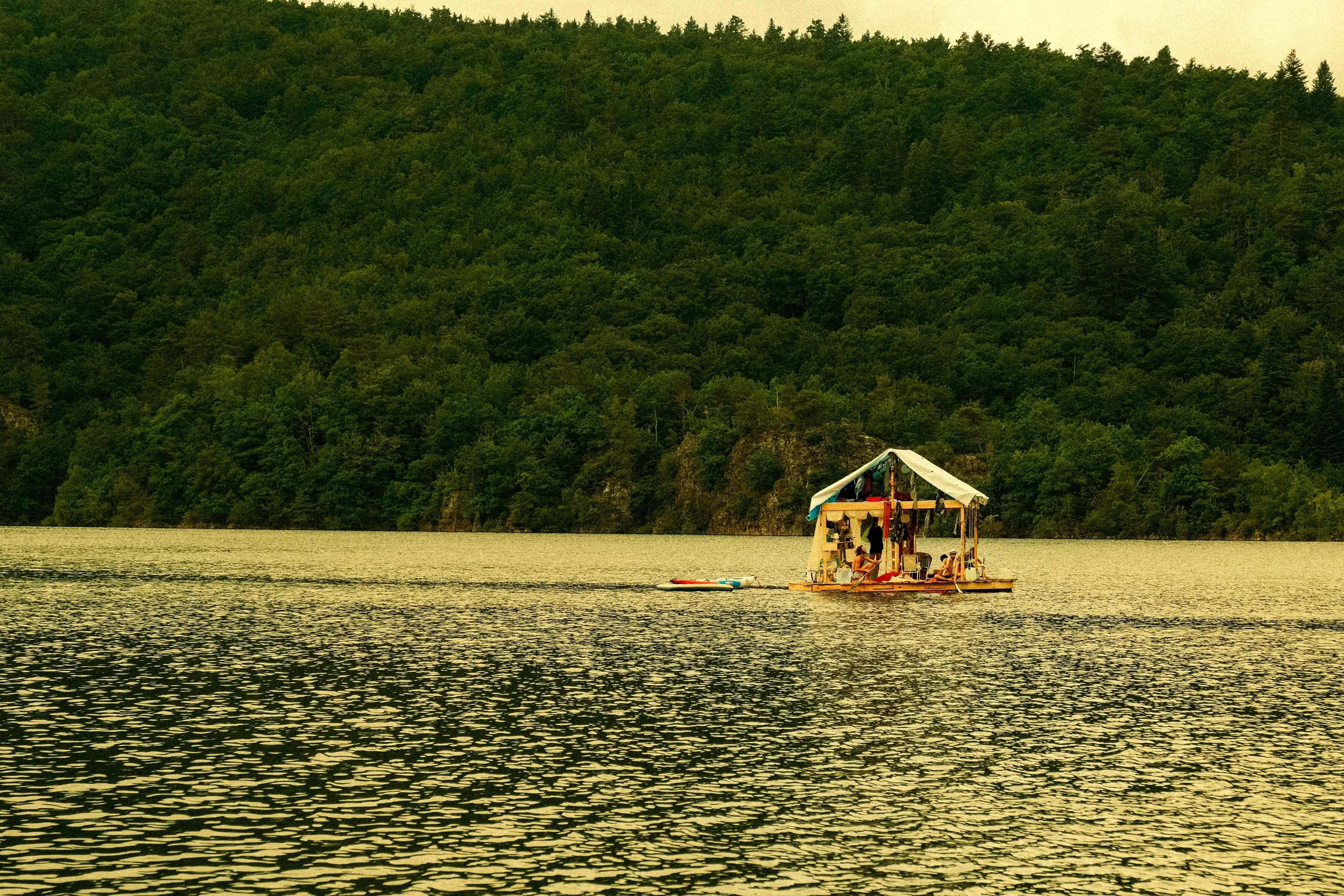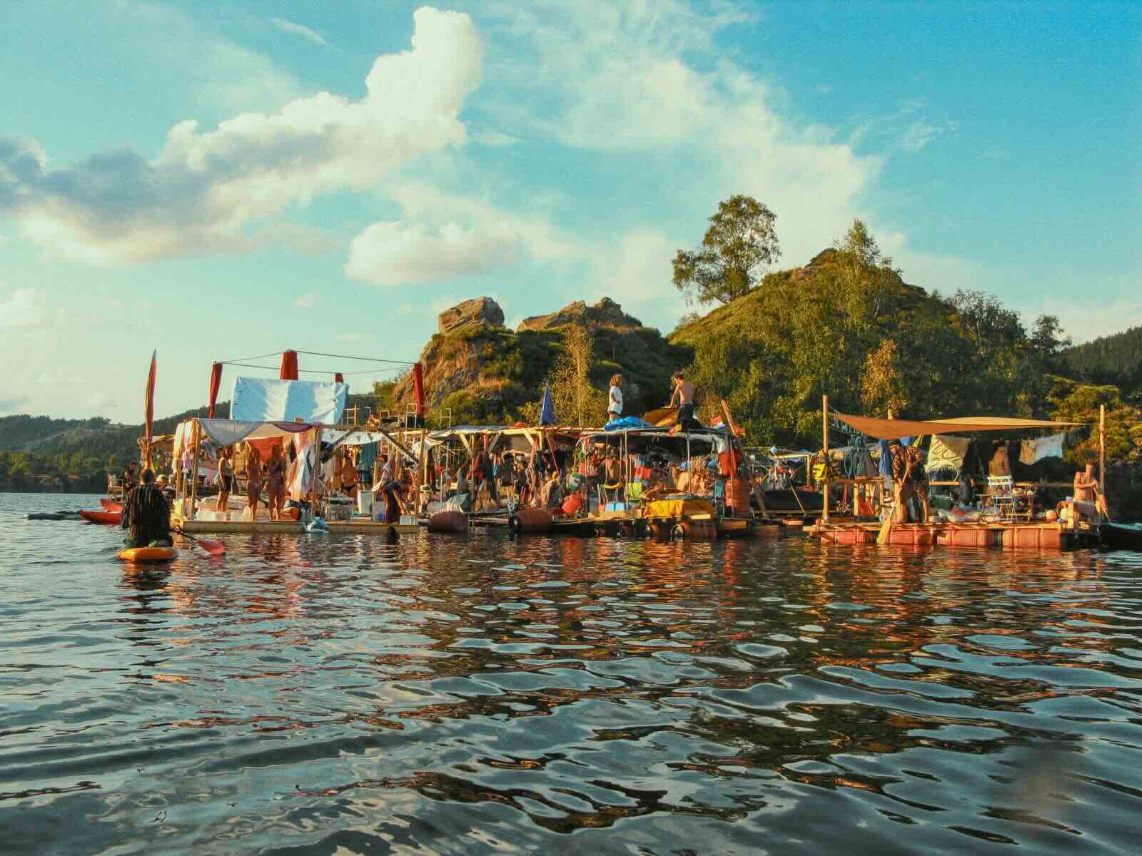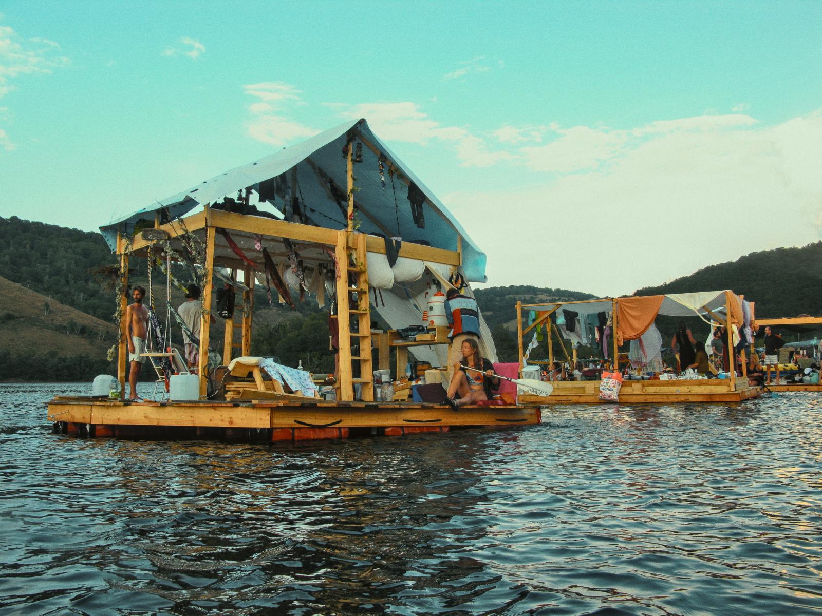 Tutto Blu est un rassemblement artistique sur l’eau. Chaque été, notre village flottant dérive sur un grand lac du Cantal.