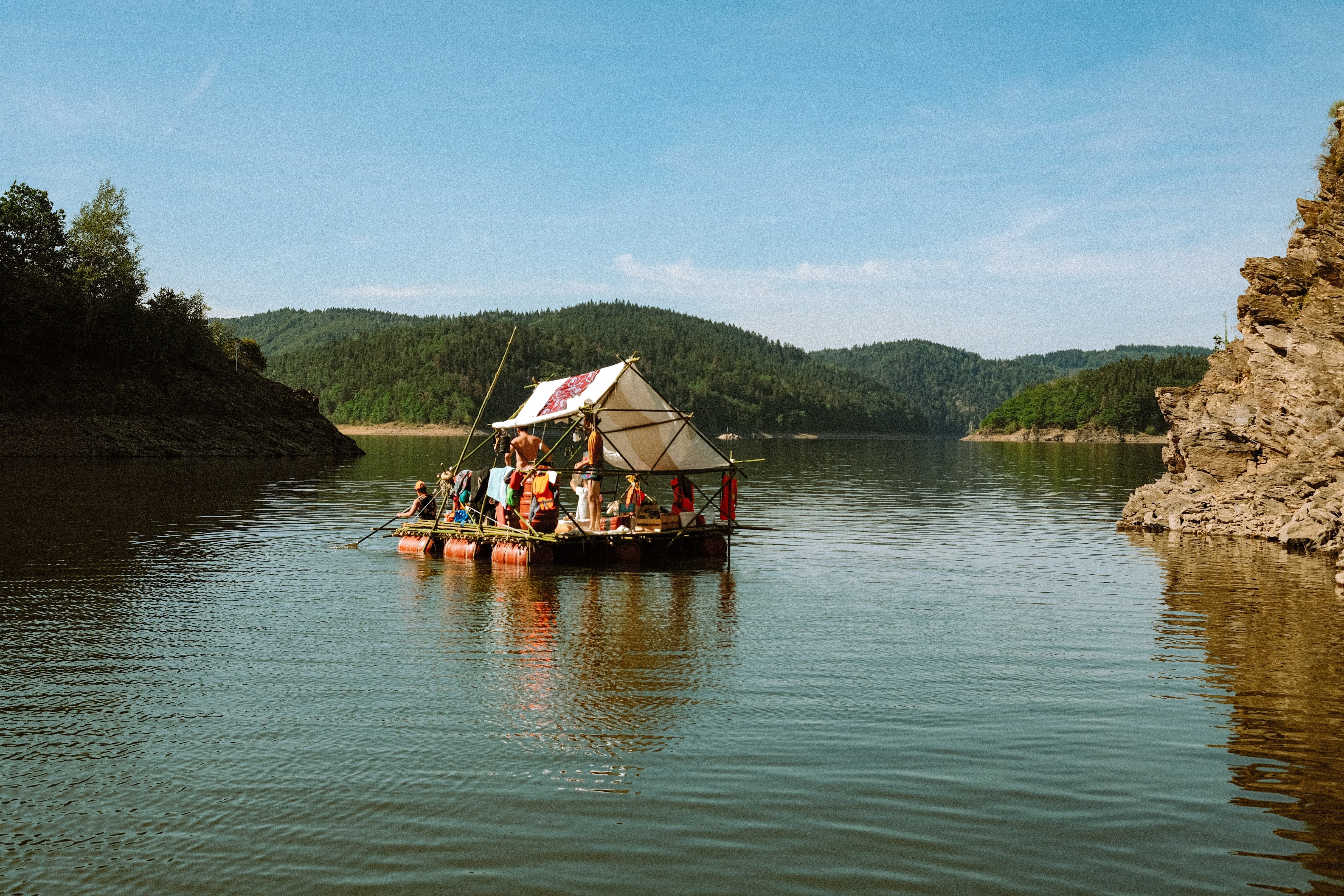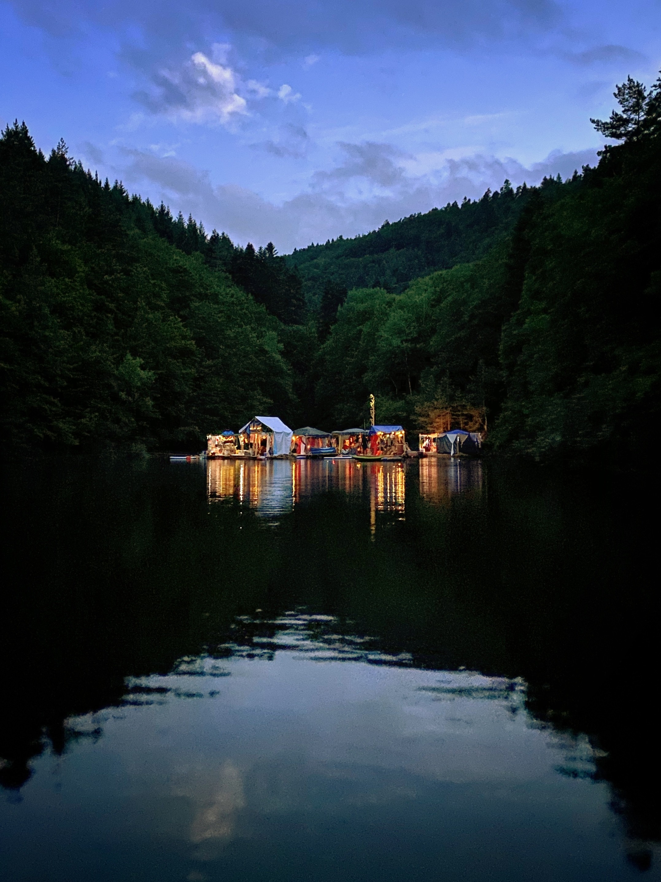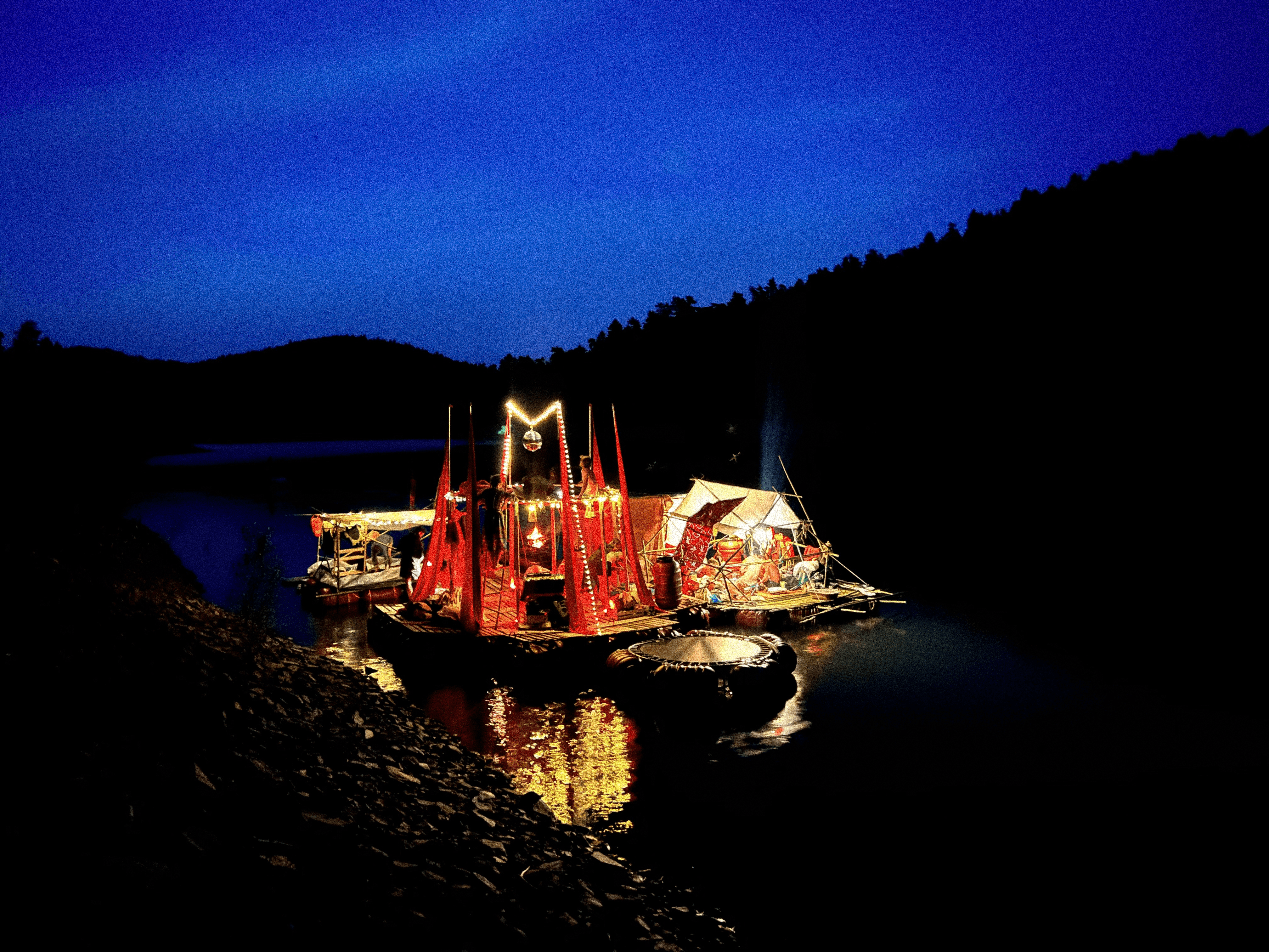 Tutto Blu est un laboratoire flottant pour l’imaginaire : chaque radeau est une œuvre nomade qui navigue librement sur le plan d'eau au cœur des montagnes. Là, le temps ralentit, et les nuits s’illuminent.